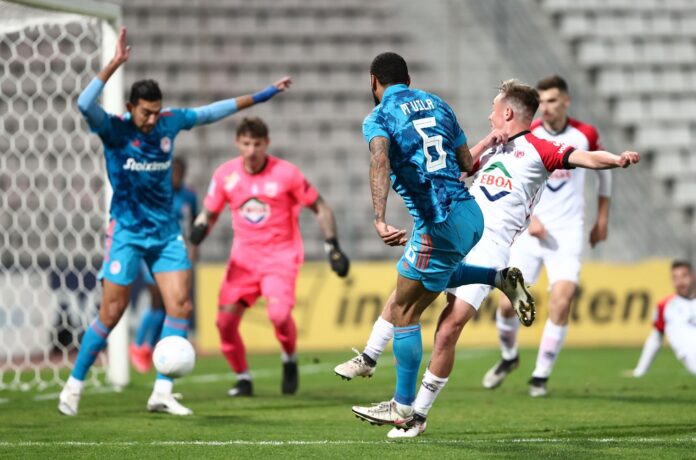 Φυσικά, στην ανακοίνωση η ΠΑΕ ΝΠΣ Βόλος στέκεται στη φάση του δευτέρου τέρματος του Ολυμπιακού, με τον Εμβιλά να πλασάρει τον Κλέιμαν και τον Χασάν να προσπαθεί να αποφύγει να μπει στην πορεία της μπάλας.
