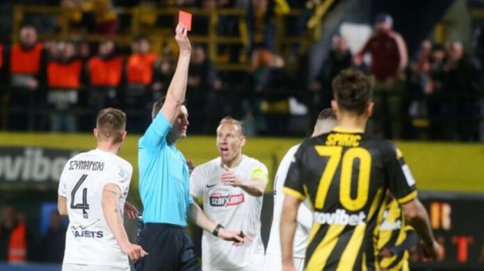 Για την κόκκινη του Μήτογλου στο παιχνίδι Άρης-ΑΕΚ: «Εδώ ο παίκτης με το νούμερο 24 της ΑΕΚ χωρίς να διεκδικεί την μπάλα διακινδυνεύει την ασφάλεια του αντιπάλου του, κάνοντας τάκλιν από πίσω με μεγάλη ταχύτητα, μεγάλη ένταση, χτυπώντας τον στον αστράγαλο. Ο διαιτητής έδειξε άμεσα την κόκκινη κάρτα την οποία επιβεβαίωσε μετά από επισκόπηση μέσω VAR. Καθαρή κόκκινη κάρτα για βίαιη επαφή».