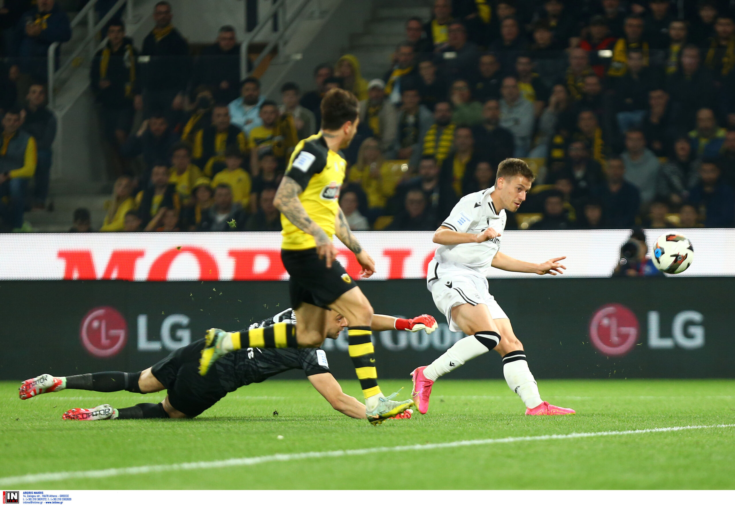 Η ΑΕΚ προηγήθηκε με το πέναλτι του Πέτρου Μάνταλου (22’) και το πλασέ του Έρικ Λαμέλα (47’) και έμοιαζε να ελέγχει απόλυτα το ματς. Όμως, οι φιλοξενούμενοι «χτύπησαν» από τις πτέρυγες και έφτασαν στην ανατροπή με τα γκολ των Γιάννη Κωνσταντέλια (58’), Αντρίγια Ζίβκοβιτς (67’) και Δημήτρη Πέλκα (85’), παίρνοντας την πρώτη φετινή νίκη σε ντέρμπι.