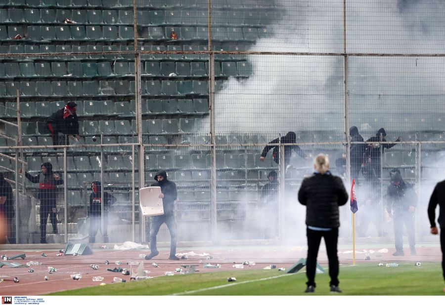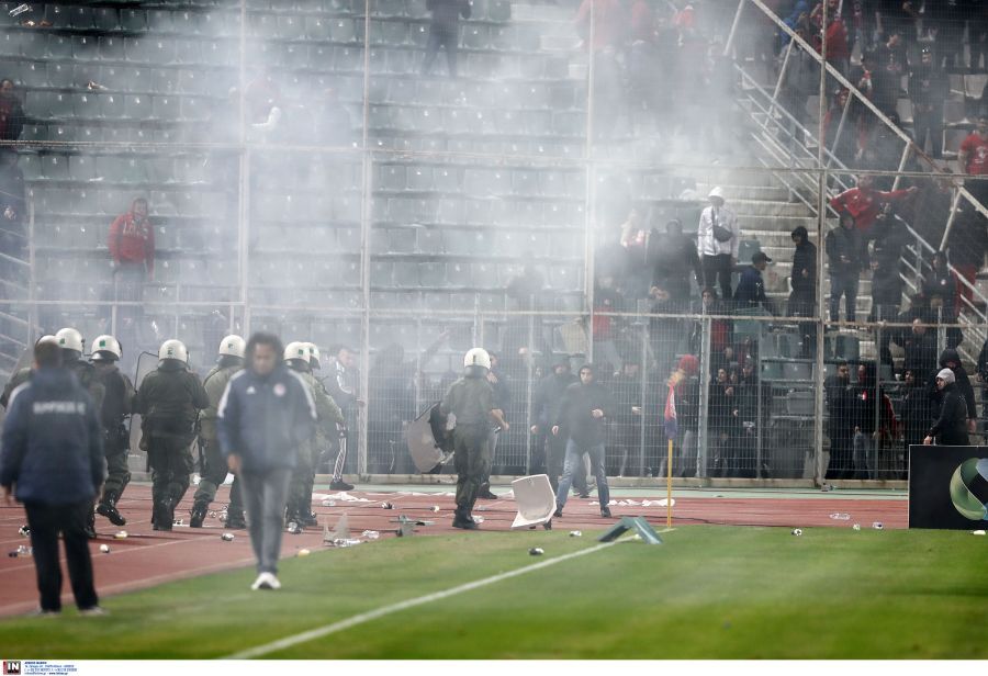 Στα τελευταία λεπτά του Βόλος – Ολυμπιακός και ενώ ακυρώθηκε γκολ του Ελ Αραμπί για το 3-2 των «ερυθρόλευκων», το ματς τινάχθηκε στον αέρα. Οι αστυνομικές δυνάμεις μπήκαν στο γήπεδο, με τους οπαδούς του Ολυμπιακού από το πέταλο να πετάνε καθίσματα προς τα ΜΑΤ.