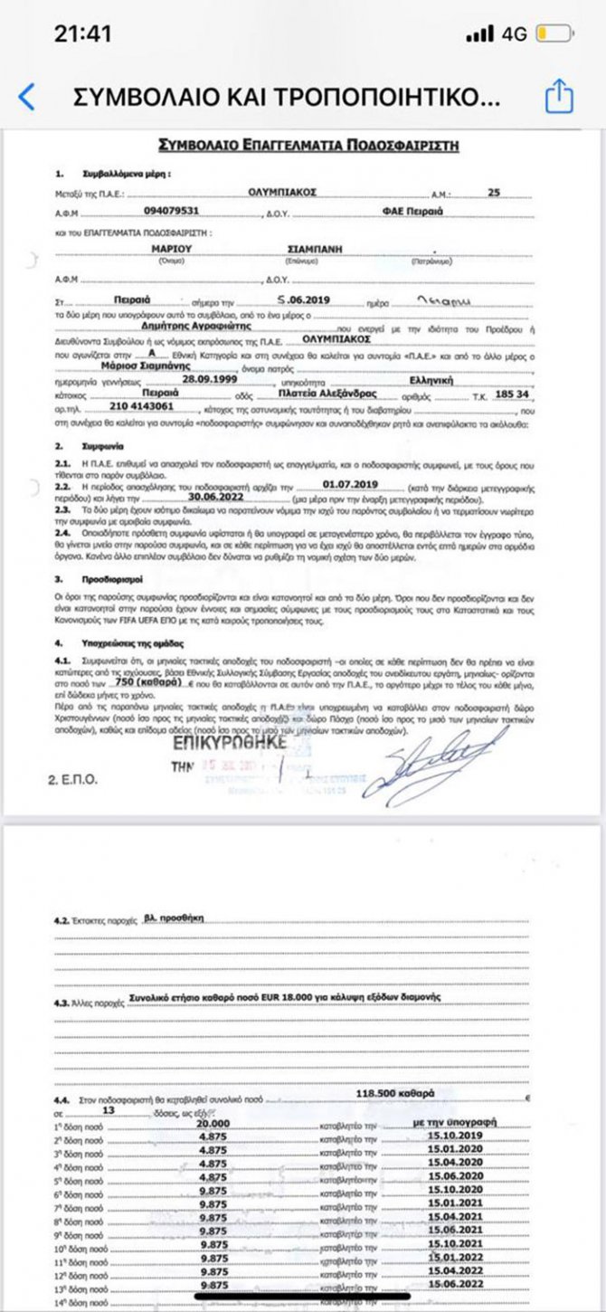 Στην συγκεκριμένη ανακοίνωση ο ΠΑΟΚ βγάζει στην δημοσιότητα τα έγγραφα που δείχνουν την συμφωνία του Ολυμπιακού με τον Σιαμπάνη, την αποδέσμευση του Σιαμπάνη από τον Ολυμπιακό αλλά και την συμφωνία του Σιαμπάνη με τον Αρη. Ο ΠΑΟΚ στην ίδια ανακοίνωση με βάση τα συγκεκριμένα έγγραφα τονίζει μεταξύ άλλων πως «ο Μάριος Σιαμπάνης αποφάσισε να φύγει από την ΠΑΕ ΟΣΦΠ, που αμοιβόταν με 200.000€ το χρόνο και να υπογράψει με 30.000€ το χρόνο στην ΠΑΕ Άρης. Επειδή κανένας λογικός άνθρωπος ή δικαστής ή εισαγγελέας σε αυτόν τον κόσμο δεν μπορεί να πιστέψει αυτή τη ραδιουργία, όποια δικαιολογία και αν σκαρφιστούν οι ΠΑΕ ΟΣΦΠ, Άρης και ο Μάριος Σιαμπάνης, η ΠΑΕ ΠΑΟΚ θα προσφύγει στην επιτροπή αδειοδότησης της ΕΠΟ και θα ζητήσει την αφαίρεση της άδειας των συγκεκριμένων ΠΑΕ, στην ΕΕΑ (όπου δυστυχώς για όλους- εκτός του ΟΣΦΠ– παραμένουν οι κουμπάροι του Αυγενάκη) και στην Επιτροπή Δεοντολογίας».