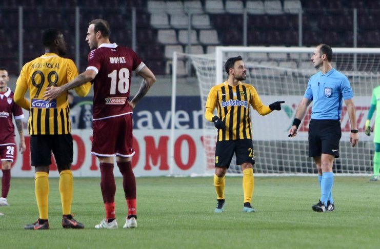 Συγκεκριμένα, περίπου πέντε λεπτά πριν από το τέλος της αναμέτρησης, ακούστηκαν ρατσιστικά συνθήματα από μερίδων φίλων της ΑΕΛ προς τον Γάλλο μέσο (είχε περάσει ως αλλαγή στο ματς) του Άρη, με αποτέλεσμα να διακοπεί ο αγώνας από τον διαιτητή Δημήτρη Καραντώνη. Με το που εκτονώθηκε η ένταση, το παιχνίδι συνεχίστηκε, ωστόσο, κανονικά παρά την επιθυμία του Μπα να αποχωρήσει από το γήπεδο.