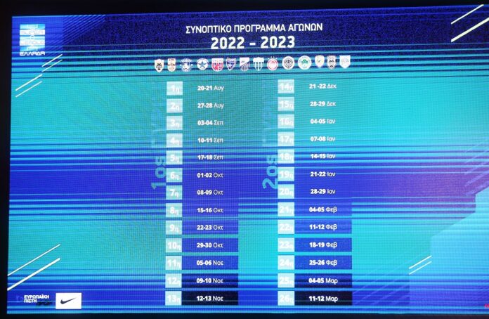 Το βράδυ της Δευτέρας (25/7) διεξήχθη η κλήρωση της Super League για τη σεζόν 2022-23. O ΝΠΣ Βόλος κάνει πρεμιέρα εντός έδρας, υποδεχόμενος τον Αστέρα Τρίπολης, ενώ το πρωτάθλημα θα διακοπεί στο τέλος του πρώτου γύρου, μιας και θ’ αρχίσει το παγκόσμιο κύπελλο (Mundial 2023) στο Κατέρ.