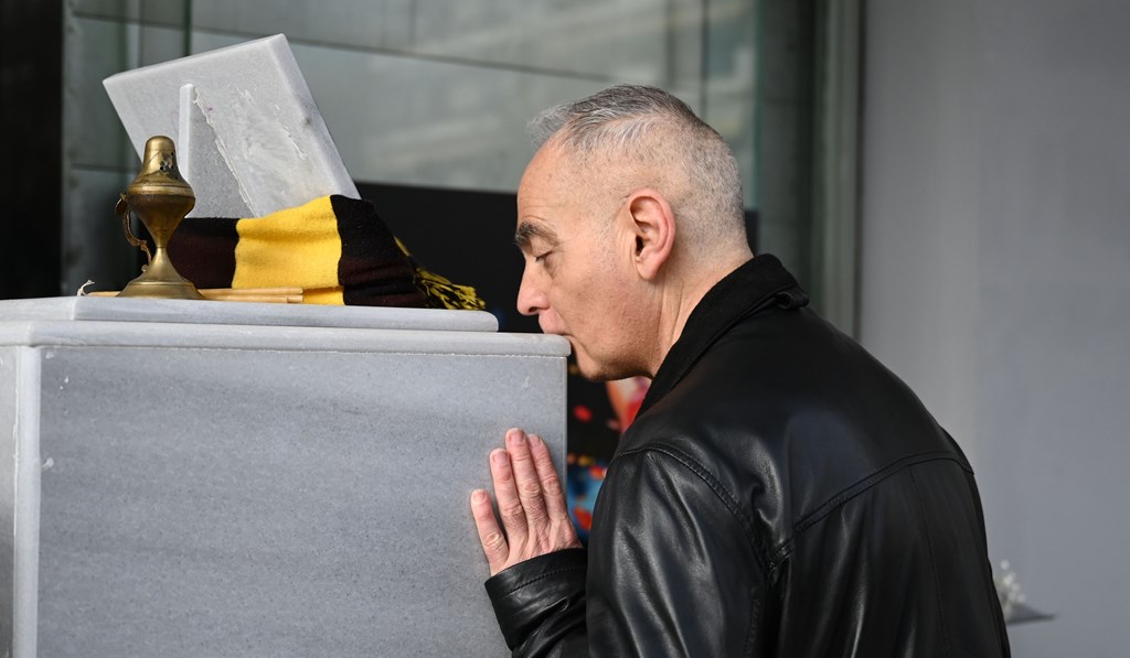Τραγική φιγούρα ο πατέρας του Αλκη Καμπανού, ο οποίος βρέθηκε στο σημείο όπου πριν από τρία χρόνια έπεσε θύμα δολοφονίας ο γιος του.