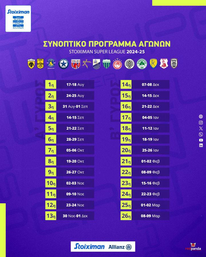 Μετά την Κλήρωση του πρωταθλήματος, η οποία θα πραγματοποιηθεί την Τρίτη 16 Ιουλίου, θα ανακοινωθεί το αναλυτικό πρόγραμμα αγώνων της κανονικής περιόδου, που αρχίζει στις 17/8/24 και ολοκληρώνεται στις 9/3/25.