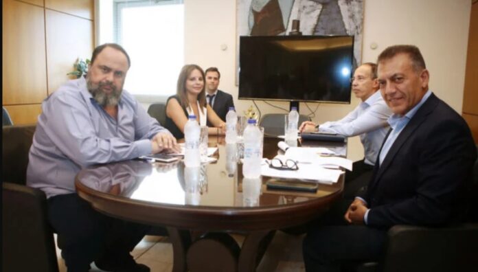 Ο αναπληρωτής υπουργός Αθλητισμού, Γιάννης Βρούτσης, συναντήθηκε τη Δευτέρα (28/8) με τον πρόεδρο της Σούπερ Λίγκας, Βαγγέλη Μαρινάκη, και την αναπληρώτρια πρόεδρο, Κάτια Κοξένογλου, παρουσία του γενικού γραμματέα Αθλητισμού, Γιώργου Μαυρωτά.