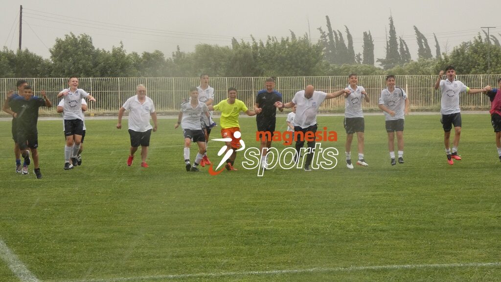 Πέντε λεπτά πριν την ολοκλήρωση της κανονικής διάρκειας, ο διαιτητής του αγώνα Γιώργος Τασσόπουλος διέταξε τη διακοπή του αγώνα, λόγω των επικίνδυνων καιρικών φαινομένων που ξέσπασαν στον Αλμυρό για περισσότερο από δεκαπέντε λεπτά της ώρας, όπου έπεφταν και κεραυνοί. Με την επανέναρξη του αγώνα κι ενώ τα καιρικά φαινόμενα είχαν κοπάσει, πίεσαν οι τυπικά φιλοξενούμενοι, αλλά χωρίς αποτέλεσμα, με τους παίκτες, τους προπονητές και τους παράγοντες να στήνουν χορό και να φωνάζουν συνθήματα υπέρ της ομάδας τους, στο κέντρο του γηπέδου, εν μέσω βροχόπτωσης. Η απονομή έγινε στις κερκίδες του Σταδίου.