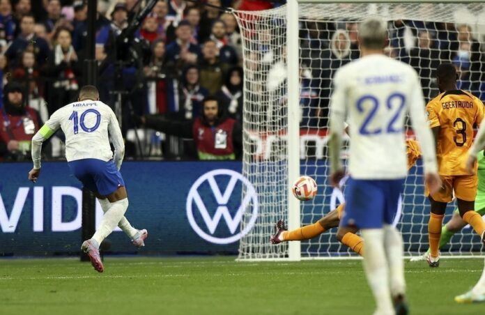 Στο Παρίσι οι «μπλε» βρήκαν απέναντί τους μία αποδεκατισμένη απ’ τις ιώσεις Ολλανδία (απουσίασαν πέντε βασικοί παίκτες) και δεν τη… λυπήθηκαν. Πριν καν συμπληρωθεί μισή ώρα αγώνα, οι Γάλλοι είχαν τελειώσει τη «δουλειά» με τα γκολ των Γκριεζμάν (3′), Ουπαμεκανό (8′) και Μπαπέ (21′) κι ακολούθως έκαναν… συντήρηση δυνάμεων, για να ολοκληρώσουν τη θριαμβευτική βραδιά τους με το 38ο γκολ του Μπαπέ με την Εθνική Γαλλίας στο 88ο λεπτό. Στο 5ο λεπτό των καθυστερήσεων ο Μενιάν απέκρουσε πέναλτι του Ντεπάι, ο οποίος έχασε την ευκαιρία να σημειώσει το γκολ της τιμής για τους «οράνιε».