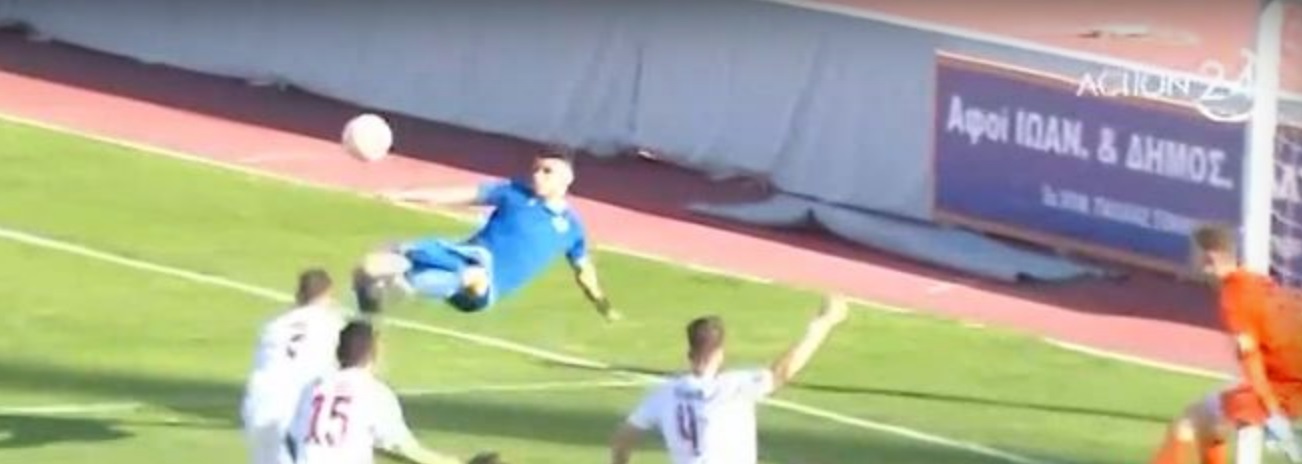 Ο Πέττας οριζοντιώθηκε για χτυπήσει την μπάλα και να τη στείλει στα δίχτυα των “βυσσινί”, πετυχαίνοντας ένα από τα πιο όμορφα τέρματα της σεζόν στη πρωτάθλημα της δεύτερης κατηγορίας του ελληνικού ποδοσφαίρου.