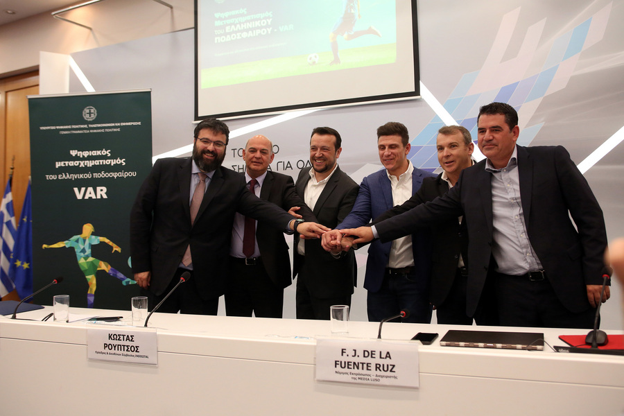 Ο υπουργός Ψηφιακής Πολιτικής, Τηλεπικοινωνιών και Ενημέρωσης Νίκος Παππάς υπέγραψε χθες τη σύμβαση με το ανάδοχο σχήμα, για την εγκατάσταση του VAR στα ελληνικά γήπεδα.