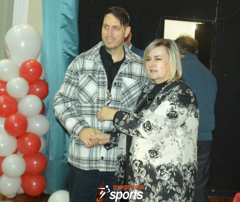 -Η προπονήτρια της περσινής γυναικείας ομάδας μπάσκετ, Ελένη Παπαθανασίου (σ.σ. την πλακέτα παρέλαβε ο γιος της Νίκος), και ο άμεσος συνεργάτης της, Κώστας Δέρβος. Την απονομή έκανε ο αντιπρόεδρος του Α.Σ. Ολυμπιακός Βόλου, Κυριάκος Κυριακόπουλος
