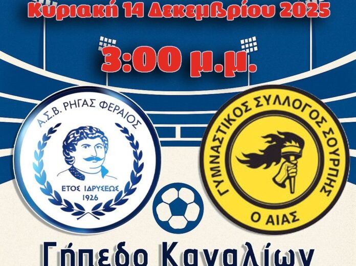 Ανακοίνωση-κάλεσμα προς τους φιλάθλους για τον αυριανό (14/12) αγώνα με τον Αίαντα Σούρπης στο γήπεδο των Καναλίων εξέδωσε η διοίκηση του Ρήγα Φεραίου. Αναλυτικά:
