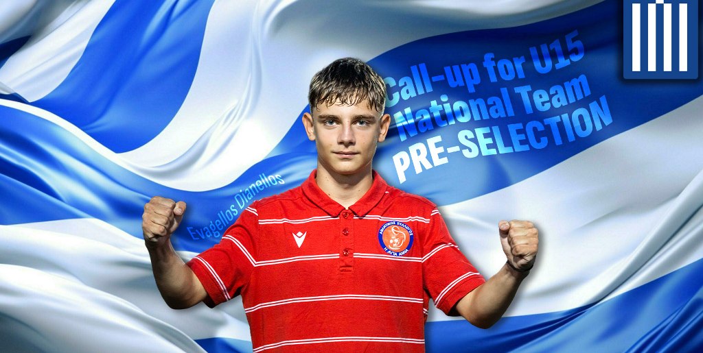 Με ιδιαίτερη συγκίνηση ανακοινώνουμε την κλήση του ποδοσφαιριστή μας, Ευάγγελου Διανέλλου (γενν. 2011), στις προπονήσεις προεπιλογής της Εθνικής Ελλάδος Κ-15.