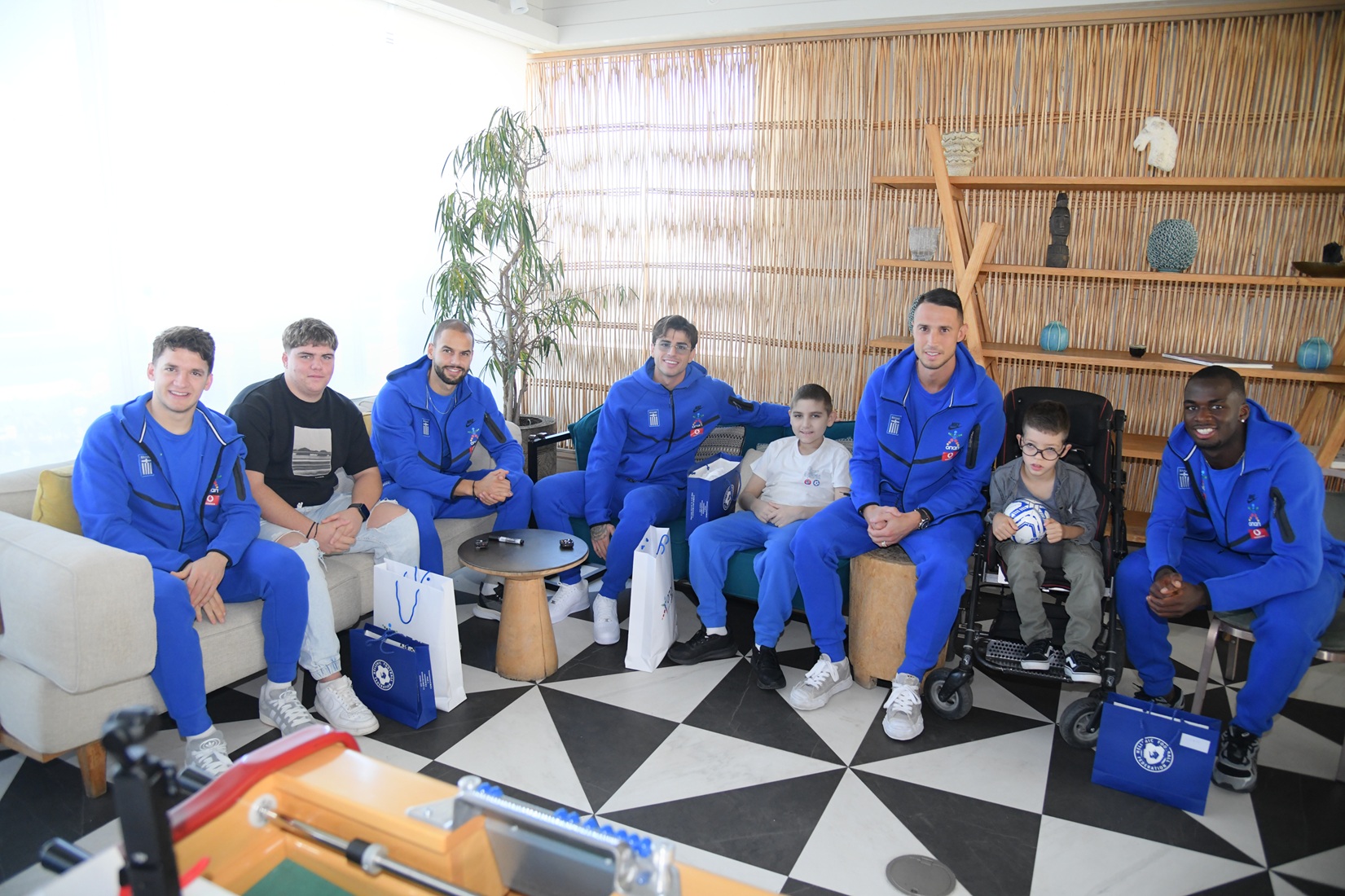 Οι διεθνείς γνωρίστηκαν με τα παιδιά, έβγαλαν φωτογραφίες μαζί τους και απάντησαν σε όλες τους τις ερωτήσεις, ενώ τους χάρισαν, ως αναμνηστικά δώρα, μία εμφάνιση της Εθνικής και ποδοσφαιρικές μπάλες. Η έκπληξη, ωστόσο, δεν σταμάτησε εκεί αφού στη συνέχεια γνώρισαν ακόμη περισσότερους παίκτες της ομάδας, παίρνοντας αυτόγραφα και βγάζοντας φωτογραφίες που θα τους θυμίζουν για πάντα αυτή τη μοναδική ημέρα που έζησαν.