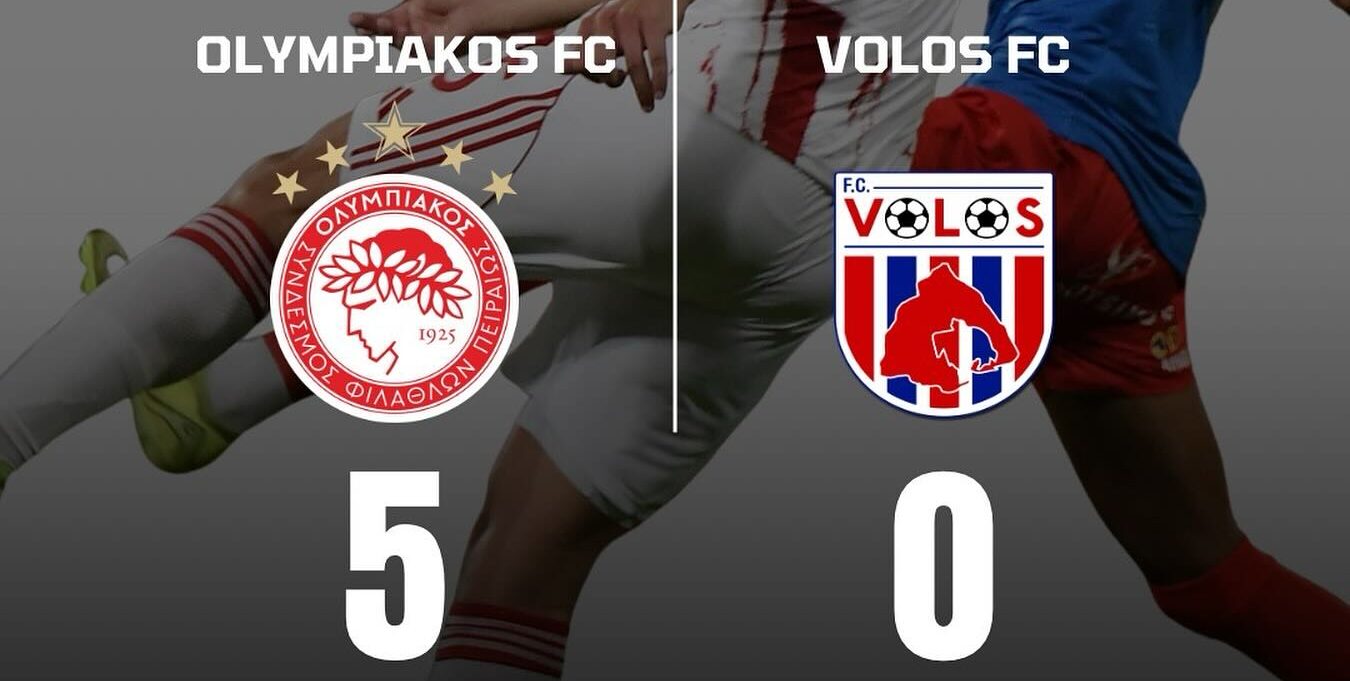 Oύτε αντίσταση δεν μπόρεσε να προβάλει ο ΝΠΣ Βόλος απέναντι στον Ολυμπιακό Πειραιώς στο «Γ. Καραϊσκάκης» για την 3η αγωνιστική της League Phase του Κυπέλλου Ελλάδας, με το σύνολο του Χοσέ Λουίς Μεντιλίμπαρ να επικρατεί με το εμφατικό 5-0, πετυχαίνοντας μάλιστα 4 τέρματα ήδη στο πρώτο μέρος, με τον Γιάρεμτσουκ μάλιστα να σημειώνει και ένα εντυπωσιακό τέρμα για το 3-0.