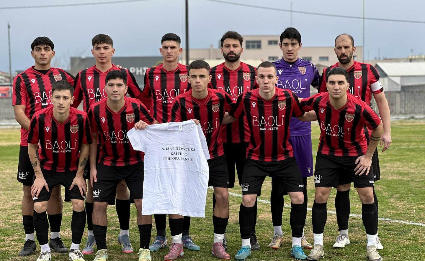 Πριν την έναρξη η ενδεκάδα του Σαρακηνού (σ.σ. παρατάχθηκε με 4-2-3-1) φωτογραφήθηκε με ένα φανελάκι, το οποίο έγραφε «Ψιάνε περαστικά και πίσω γρήγορα ξανά» για τον μεγάλο άτυχο της ομάδας, που υπέστη ρήξη χιαστών στο παιχνίδι με τη Βέροια.