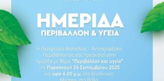 «Περιβάλλον και υγεία»: Ημερίδα της Περιφέρειας Θεσσαλίας στον Βόλο