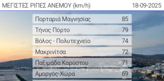 Πορταριά, Βόλος και Μακρινίτσα στις περιοχές με τον εντονότερο αέρα