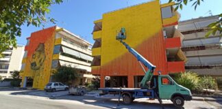Τοιχογραφία σε πολυκατοικία του Βόλου με θέμα τα αδέσποτα