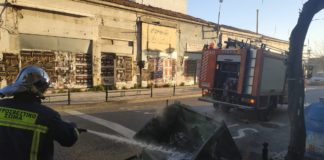 Φωτιά σε κάδους απορριμμάτων στο κέντρο του Βόλου