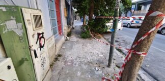 Πεζοδρόμιο-παγίδα στην Ανθίμου Γαζή: Κομμένη η προειδοποιητική ταινία, αλλά ο σοβάς...
