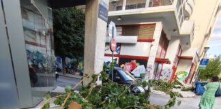 Απροσπέλαστα λόγω πεσμένων δέντρων πεζοδρόμια στην Ανθ. Γαζή (φωτογραφίες)