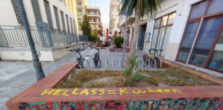 Βρόμισαν με αντεθνικά συνθήματα κεντρικό σημείο της παραλίας του Βόλου