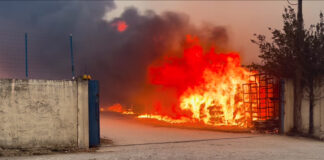 Στις φλόγες αποθήκη πλαστικών στο Σέσκλο (βίντεο)