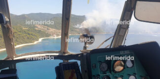 Φωτιά στο Αγιο Ορος κοντά στη μονή Δοχειαρίου