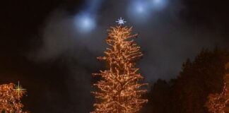 Φωταγωγείται στα Τρίκαλα το υψηλότερο φυσικό Χριστουγεννιάτικο δέντρο