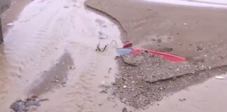 «Έσκασε» ο δρόμος στην Αγριά – Βγήκε ο αγωγός έξω (βίντεο)