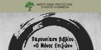 «Ο μόνος επιζών»: Παρουσίαση βιβλίου από τον Αναπτυξιακό-Πολιτιστικό Σύλλογο «Η ΔΡΑΚΕΙΑ»