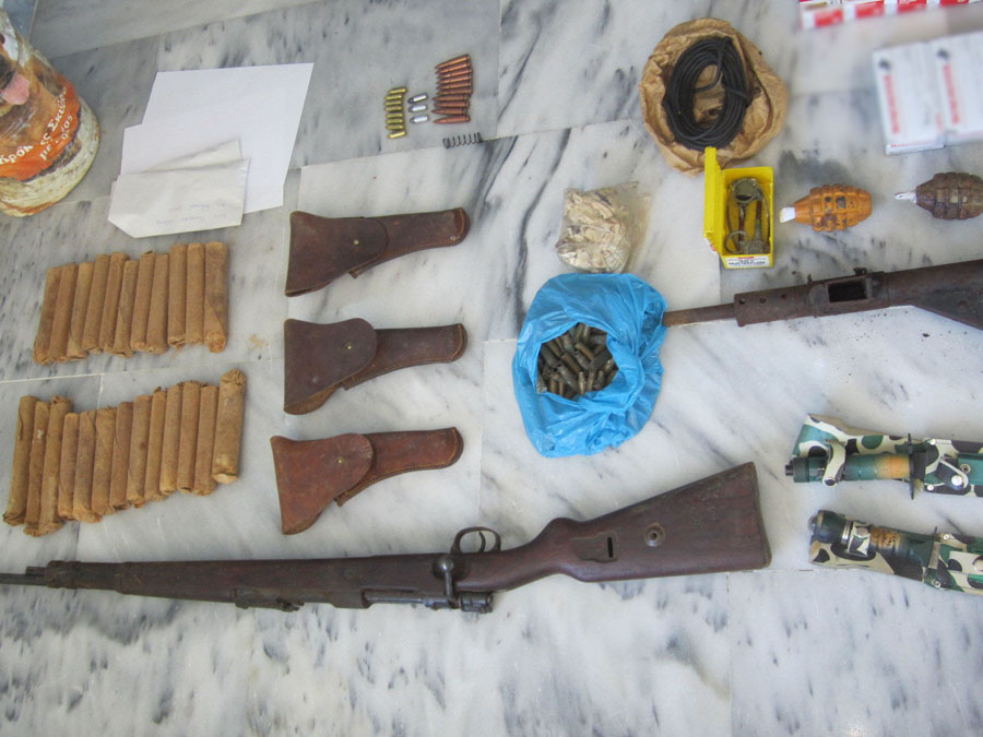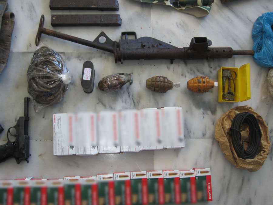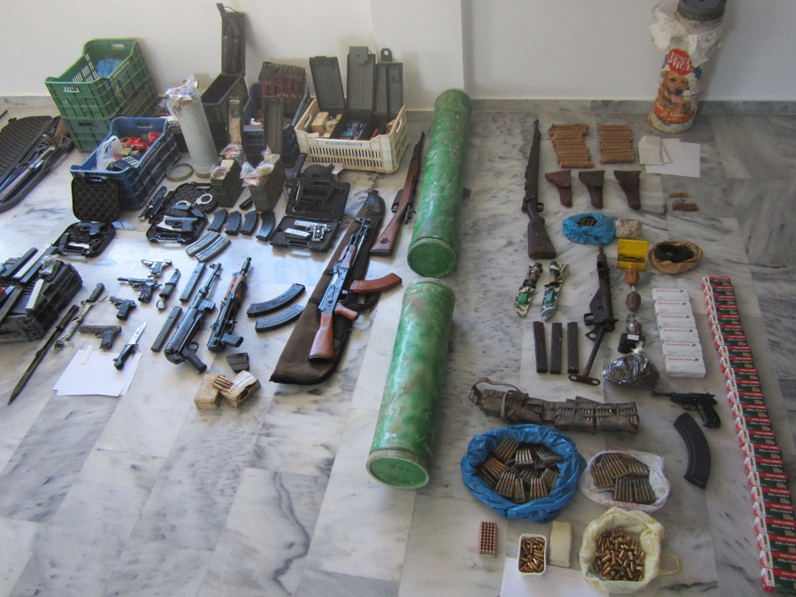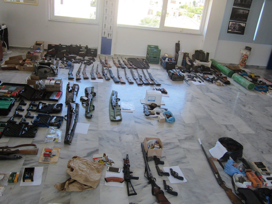 Κατασχέθηκαν -μεταξύ άλλων- 45 πιστόλια, 9 πολεμικά τυφέκια, 3 χειροβομβίδες, 22 καραμπίνες-κυνηγητικά όπλα και πάνω από 26.000 φυσίγγια