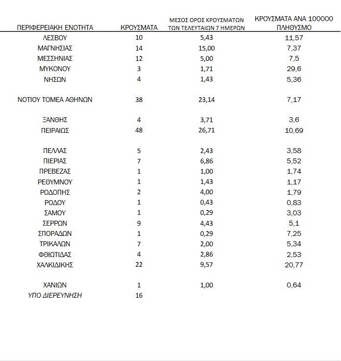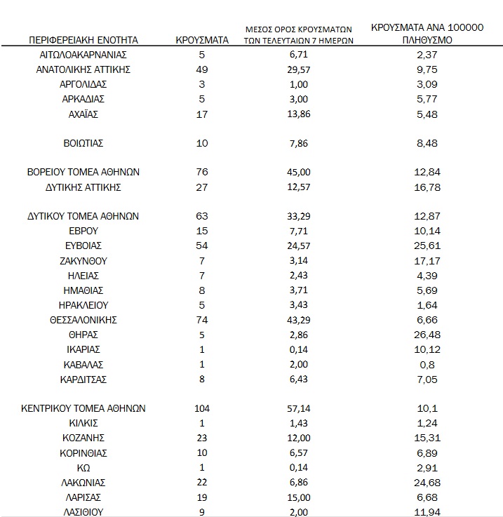 Δείτε αναλυτικά τον χάρτη της πανδημίας ανά περιφέρεια, όπως τον δημοσιοποίησε ο ΕΟΔΥ:
