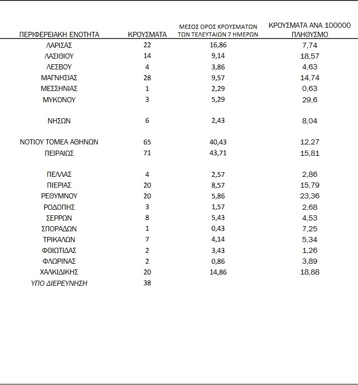 Δείτε αναλυτικά την κατανομή των κρουσμάτων ανά περιφέρεια σύμφωνα με τα στοιχεία του ΕΟΔΥ: