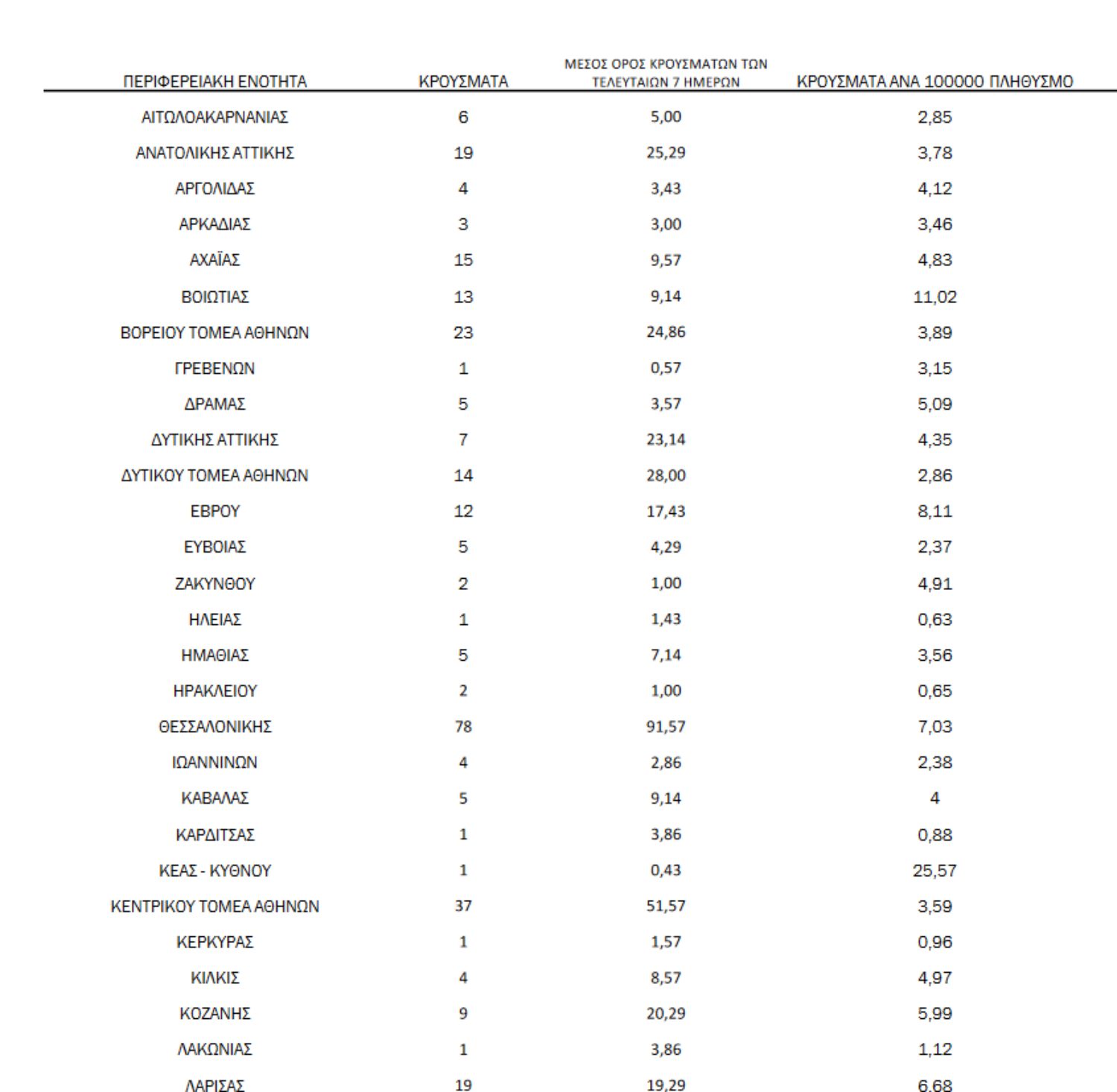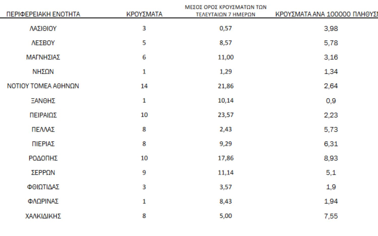Αναλυτικά τα κρούσματα ανά Περιφέρεια: