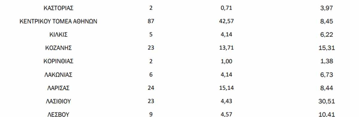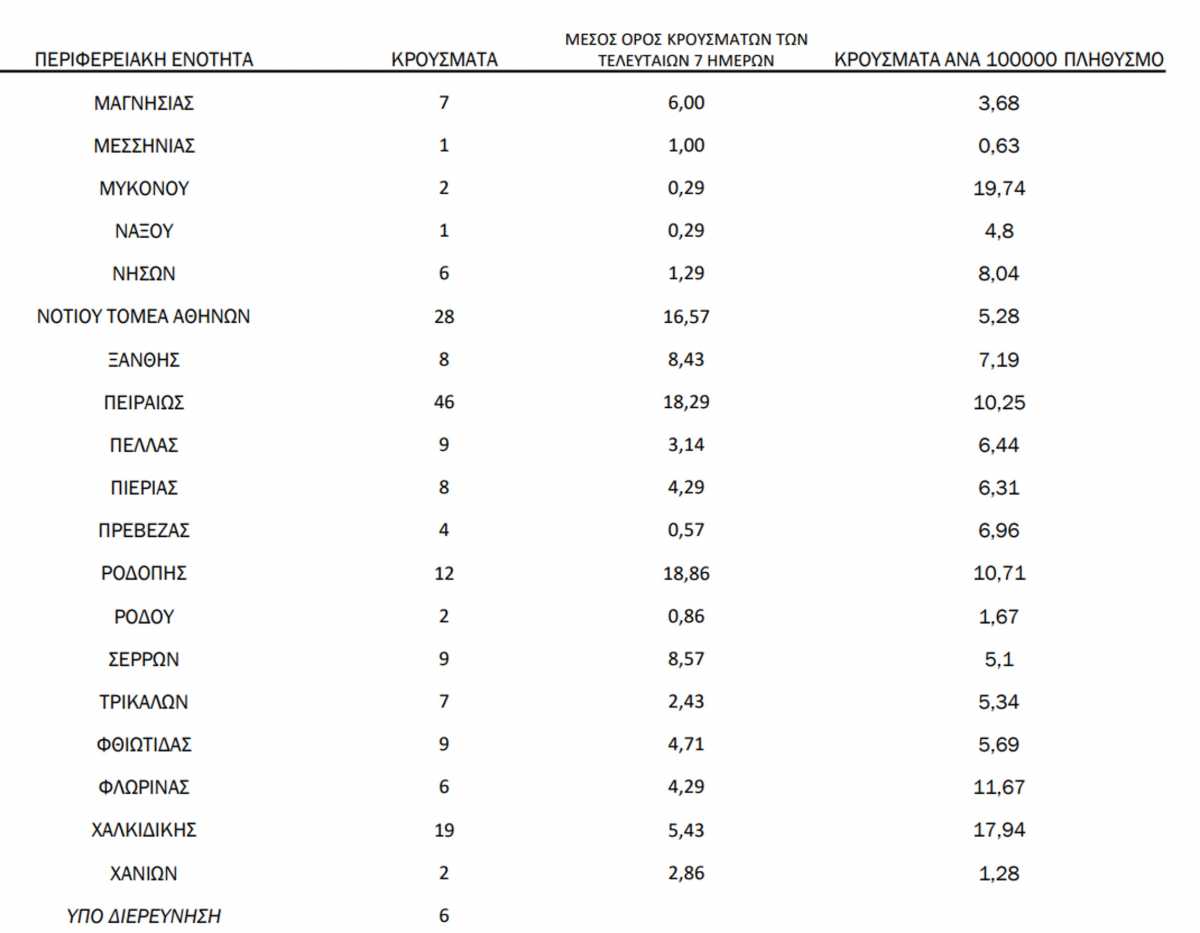 Αναλυτικά η κατανομή των κρουσμάτων ανά περιφέρεια:
