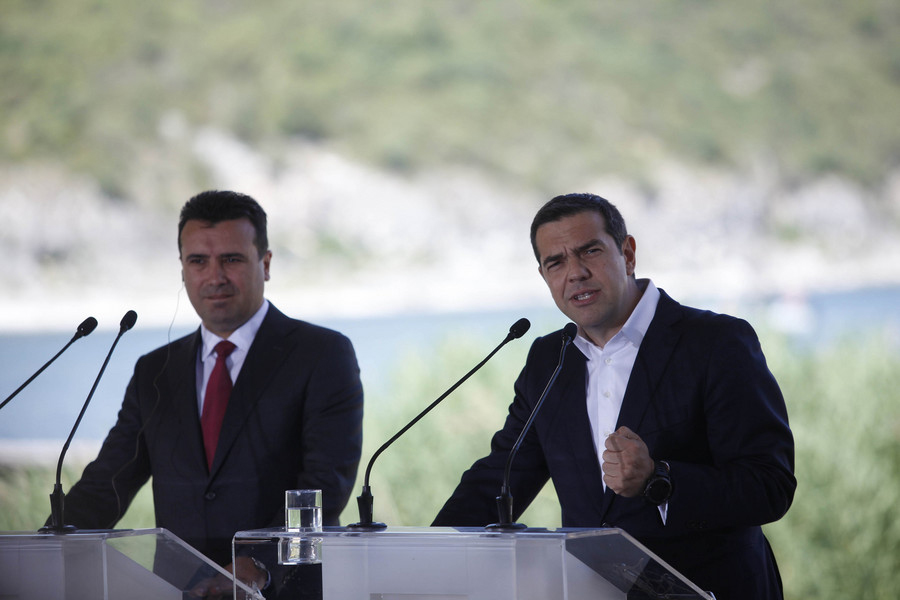 «Αξιότιμε κ. πρωθυπουργέ φίλε και γείτονα Ζόραν» είπε ο Αλέξης Τσίπρας ξεκινώντας τις δηλώσεις του στο πλαίσιο της τελετής της υπογραφής της συμφωνίας για το ονοματολογικο της ΠΓΔΜ. Βρισκόμαστε στο δικό μας ραντεβού με την ιστορία, βρισκόμαστε σε ένα σημείο που το έχουν διαβεί νικητές και ηττημένοι, σημείωσε ο Αλέξης Τσίπρας. «Βρισκόμαστε εδώ για να αναμετρηθούμε με το βάρος της δικής μας ιστορίας» πρόσθεσε. «Βρισκόμαστε και οι δυο εδώ για να πράξουμε το πατριωτικό μας καθήκον , δεν ανταμώνουμε για να θρηνήσουμε τις ήττες του παρελθόντος» πρόσθεσε.