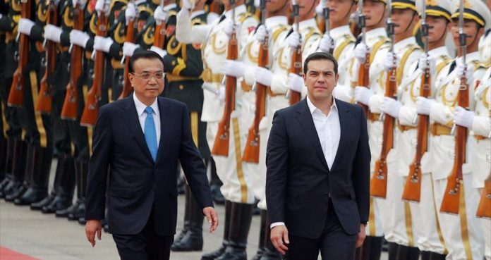 Παρουσία του Κινέζου ομολόγου του, Λι Κετσιάνγκ, πραγματοποιήθηκε η ανάκρουση των εθνικών ύμνων των δύο χωρών, ενώ στη συνέχεια, ο κ. Τσίπρας και ο Λι Κετσιάνγκ επιθεώρησαν τιμητικό άγημα από άνδρες και γυναίκες του στρατού και της αεροπορίας της Κίνας.