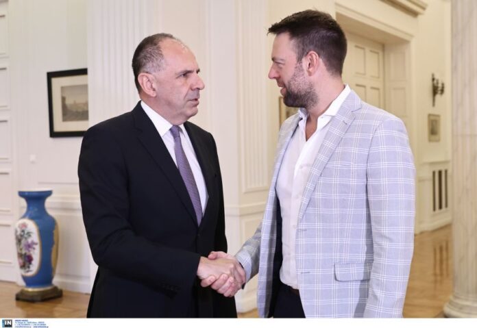 Ο Πρόεδρος του ΣΥΡΙΖΑ-ΠΣ, Στέφανος Κασσελάκης, συνοδευόμενος από την τομεάρχη Εξωτερικής Πολιτικής, Ρένα Δούρου και τον διπλωματικό σύμβουλο Δημήτρη Παπαγεωργίου, συνάντησε σήμερα τον Υπουργό Εξωτερικών, Γιώργο Γεραπετρίτη, προκειμένου να ενημερωθεί για σειρά ζητημάτων εξωτερικής πολιτικής.
