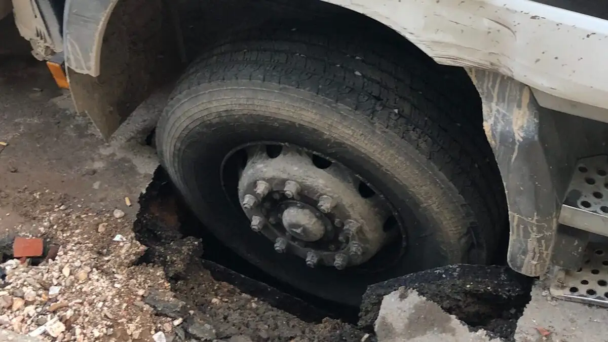 Σοβαρή βλάβη στο δίκτυο της ΕΥΔΑΠ στην οδό Λιδωρικίου στον Άγιο Δημήτριο προκάλεσε μεγάλη διαρροή νερού και καθίζηση. Αποτέλεσμα ήταν να εγκλωβιστεί διερχόμενο απορριμματοφόρο του δήμου που εκτελούσε εργασίες καθαρισμού.