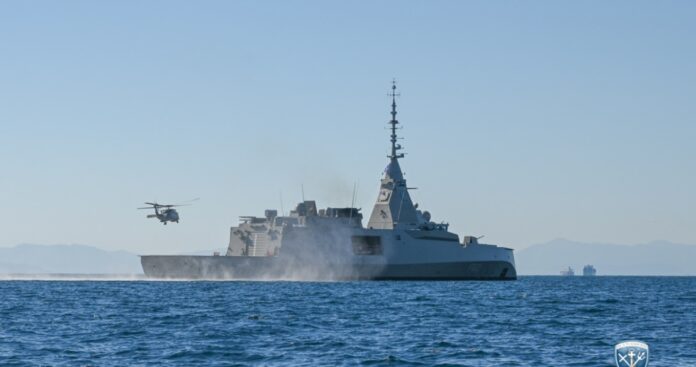 Υπενθυμίζεται πως τη νέα ελληνική υπερσύγχρονη φρεγάτα Belharra -η πρώτη από τις τέσσερις που θα παραλάβει η Ελλάδα-, υποδέχθηκαν την Πέμπτη σε σχηματισμό δύο φρεγάτες, δύο ταχέα περιπολικά κατευθυνόμενων βλημάτων, δύο κανονιοφόροι και δύο σκάφη ανορθόδοξου πολέμου. Παράλληλα, από αέρος συμμετείχαν στην τελετή, τρία ελικόπτερα Aegean Hawk του ελληνικού Πολεμικού Ναυτικού.