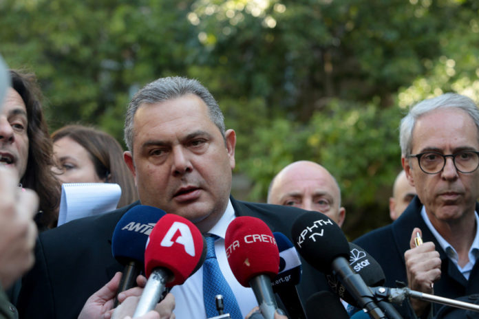 «Συναντήθηκα με τον πρωθυπουργό. Κάναμε μία αρκετά μεγάλη συζήτηση. Υπήρξε μια συνεργασία επί τέσσερα ολόκληρα χρόνια σε μια κυβέρνηση εθνικής ενότητας. Καταφέραμε να βγάλουμε την πατρίδα μας από τα μνημόνια. Ο πρώτος στόχος επετεύχθη. Το θέμα της Μακεδονίας δεν μου επιτρέπει να μη θυσιάσω την καρέκλα. Ευχαρίστησα τον πρωθυπουργό. Για το εθνικό θέμα δεν μπορεί να συνεχισθεί αυτή η συνεργασία. Οι ΑΝΕΛ αποχωρούν από την κυβέρνηση» δήλωσε ο Πάνος Καμμένος αμέσως μετά τη συνάντηση με τον πρωθυπουργό Αλέξη Τσίπρα στο Μέγαρο Μαξίμου.