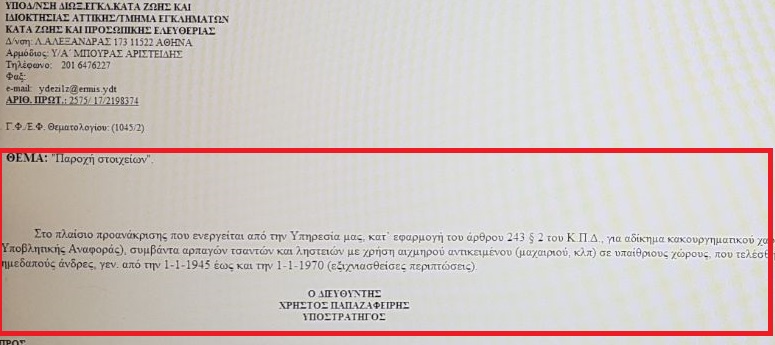 Το «έγγραφο – κλειδί» στις έρευνες της ΕΛ.ΑΣ.
