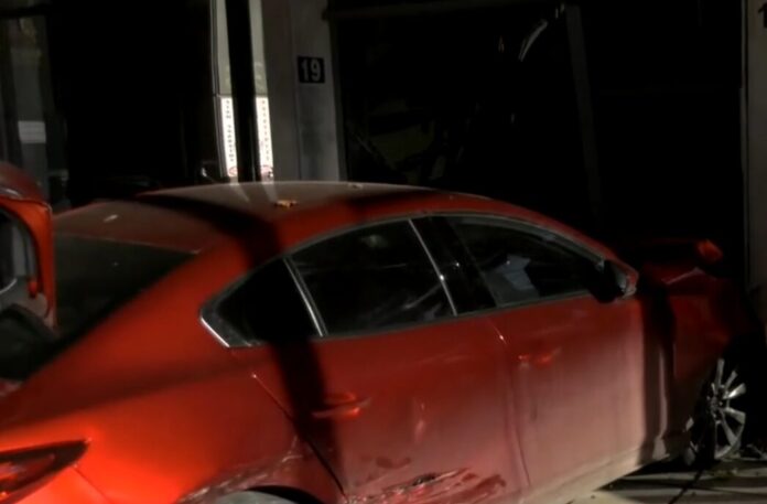 Σύμφωνα με την ΕΡΤ το αυτοκίνητο κατέληξε στην είσοδο της πολυκατοικίας μετά από σύγκρουση με άλλο όχημα που οδήγησε στην εκτροπή από την πορεία του.