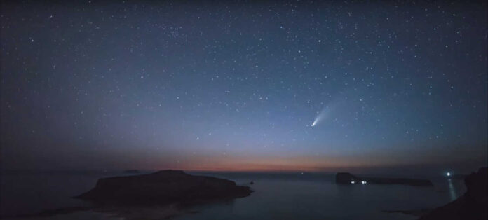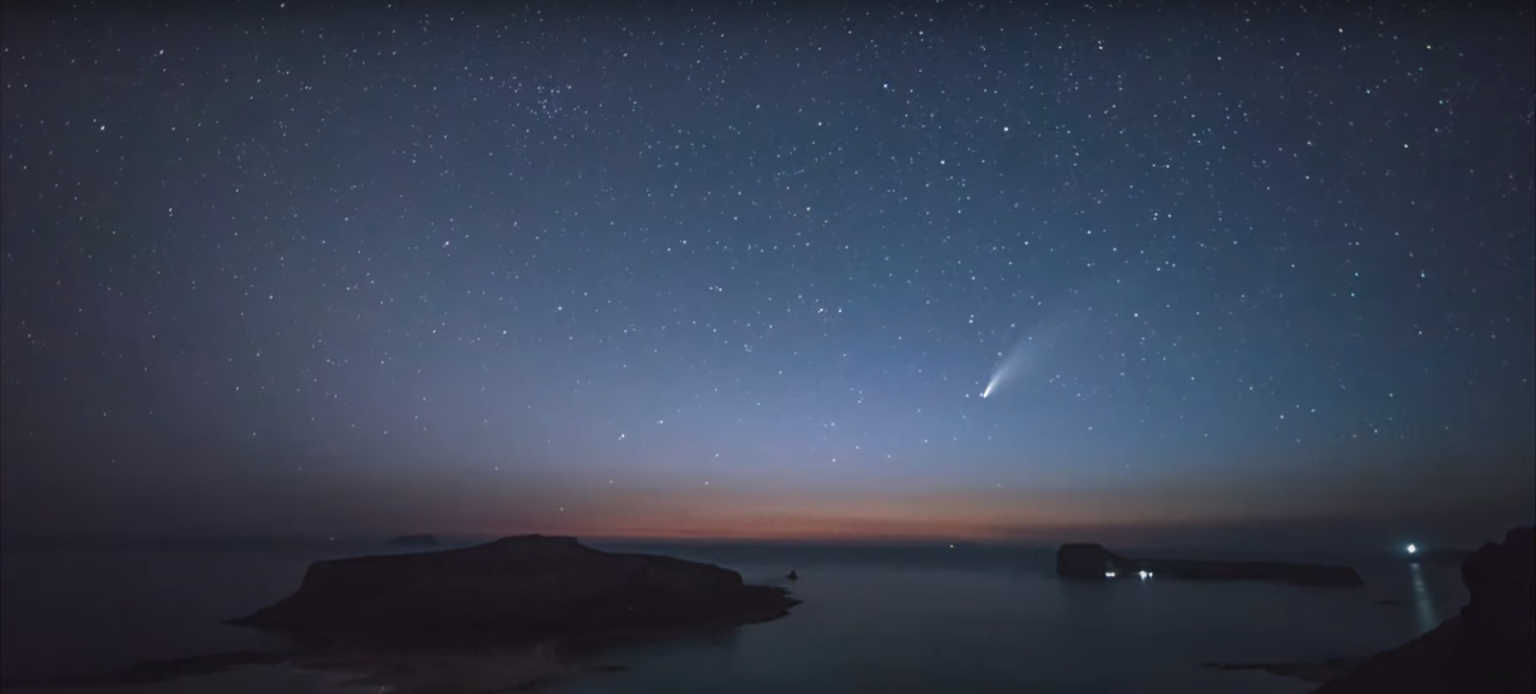Ο κομήτης C/2020 F3 (Neowise) είναι ένας μη περιοδικός κομήτης που επιστήμονες τον ανακάλυψαν τον περασμένο Μάρτιο του 2020. Ο κομήτης ανέπτυξε δύο ουρές, μία καμπύλη ουρά σκόνης, μήκους περίπου 5 μοιρών, και μία αχνότερη ουρά ιόντων. Τις τελευταίες ημέρες (μετά τις 12 Ιουλίου) o κομήτης άρχισε να γίνεται ορατός στον βραδινό ουρανό μετά το ηλιοβασίλεμα. Ο κομήτης αναμένεται να περάσει στην ελάχιστή του απόσταση από τη Γη στις 20-22 Ιουλίου.