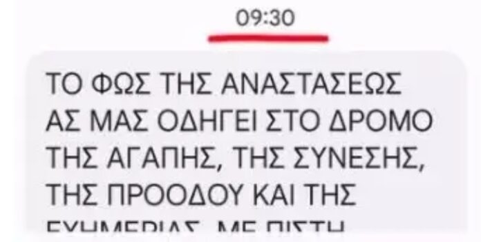 Ωστόσο… κάτι δεν πήγε καλά και οι πολίτες γύρω στις 13:30 έλαβαν στα κινητά τους μήνυμα από τον δήμαρχο Καλαμάτας, Θανάση Βασιλόπουλο, ο οποίος, όμως, τους ευχόταν “Καλή Ανάσταση”!