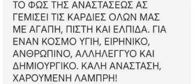 Ωστόσο… κάτι δεν πήγε καλά. Πολλοί ήταν οι πολίτες, που έλαβαν στα κινητά τους μήνυμα από τον δήμαρχο Καλαμάτας, Θανάση Βασιλόπουλο, ο οποίος, όμως, τους ευχόταν “Καλή Ανάσταση”!