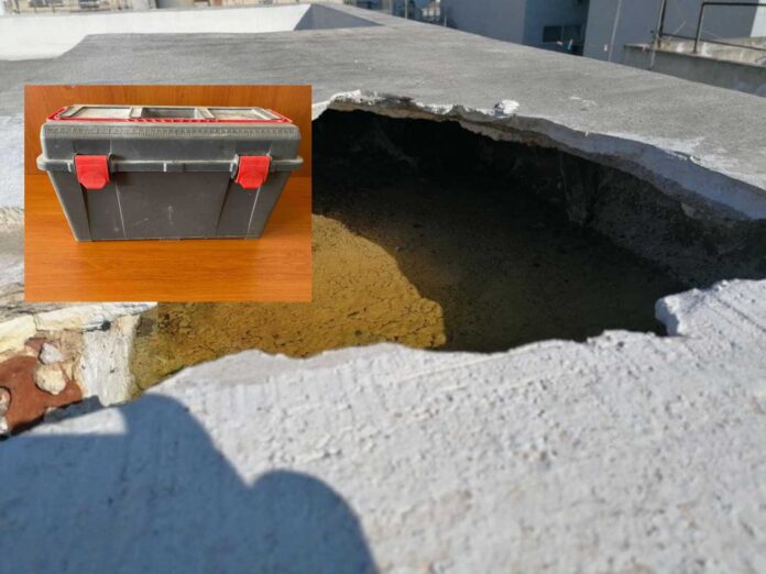 Σήμερα το πρωί διενεργήθηκε, παρουσία Δικαστικού Λειτουργού έρευνα στο ανωτέρω διαμέρισμα και ανευρέθη στον αποθηκευτικό χώρο καναπέ, στη βεράντα του διαμερίσματος, εργαλειοθήκη που περιείχε δύο σακούλες με ανθρώπινα οστά.