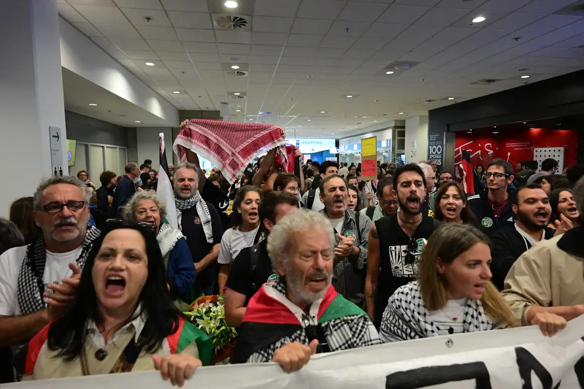 Στις 3 Οκτωβρίου απήχθησαν από τις αρχές του Ισραήλ, οι 27 Έλληνες, κατά από την αναχαίτιση των πλοίων που κατευθύνονταν προς τη Γάζα, στα πλαίσια της αποστολής του στολίσκου Sumud για να προσφέρει ανθρωπιστική βοήθεια. Σήμερα, συνολικά 171 ακτιβιστές απελάθηκαν από το αεροδρόμιο Ramon στο Εϊλάτ, καθώς οι πτήσεις τους είχαν προορισμό την Ελλάδα και τη Σλοβακία.